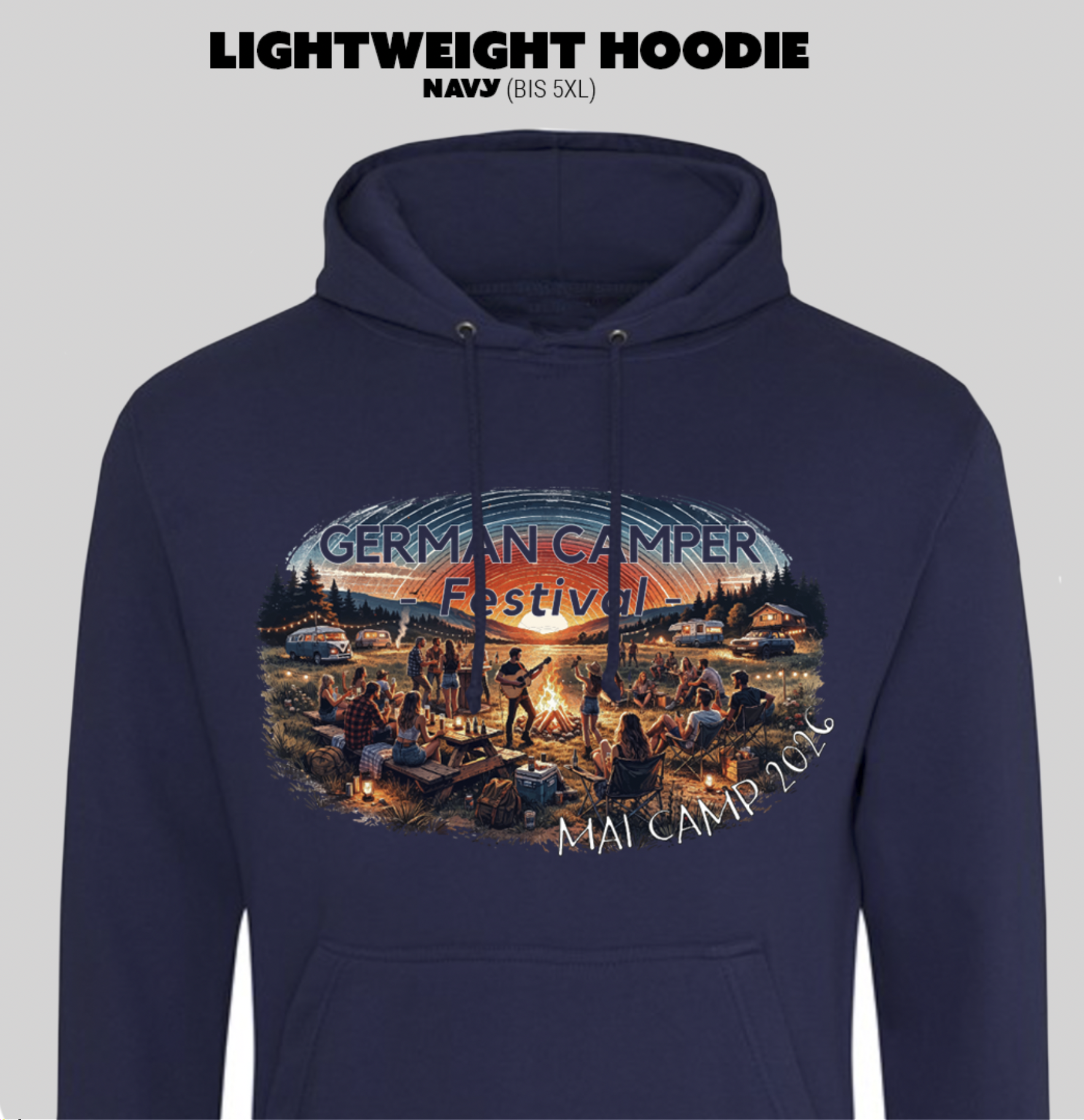 Gerne können wir Dir die Textilen auch zum German Camper Festival – Mai Camp 2026 mitbringen. Dann könntest Du dir das Porto sparen.
